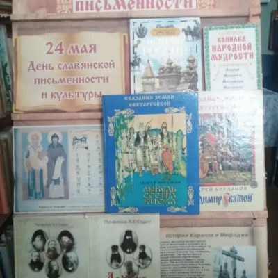 Бычковская библиотека представляет информационный буклет «К истокам русской писменности», посвящённую Дню славянской письменности и культуры. Ежегодно 24 мая во всех славянских странах торжественно прославляют создателей славянской письменности Кирилла и Мефодия — учителей словенских. День славянской письменности и культуры (День святых Кирилла и Мефодия) — российское название праздника, приуроченного ко дню памяти святых равноапостольных братьев Мефодия и Кирилла. Именно им мы обязаны языком, культурой, письменностью. Праздник учрежден в 1991 году. Этой знаменательной дате посвящена выставка «К истокам русской письменности», которая с 22 мая открыта в Бычковской библиотеке. На выставке представлена литература, рассказывающая об истории славянской письменности, о возникновении кириллической азбуки и т.д., приведены биографические сведения об основателях славянской письменности –Кирилле и Мефодии.