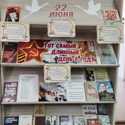 Ранним утром 22 июня 1941 года, 83 года назад, началась страшная и кровопролитная война, которая вошла в историю, как Великая Отечественная война. Каждая семья почувствовала тяжёлое дыхание беды, каждый третий не вернулся с полей сражений. В память о самом чёрном дне в истории России в Краснофлотской библиотеке оформлена книжная выставка «ТОТ САМЫЙ ДЛИННЫЙ ДЕНЬ В ГОДУ».