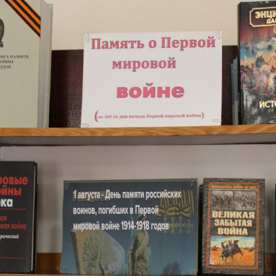 В день памяти российских воинов, погибших в Первой мировой войне 1914-1918 годов будет оформлена книжная выставка , на которой будут представлены книги из фондов библиотеки, рассказывающие о причинах мировой войны, о ходе боевых действий, о героизме русских солдат, о нелегких судьбах простых людей.