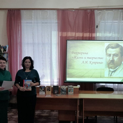 27 ноября в Петропавловской библиотеке №1 МКУ «Культурно-досуговый центр ПМР», прошло мероприятие, посвящённое русскому писателю Александру Ивановичу Куприну. На данное мероприятие были приглашены ученики 9 класса Петропавловской средней школы. Вместе с детьми работники библиотеки совершили виртуальное путешествие по жизни и творчеству Куприна. Вначале библиотекари рассказали биографию писателя. Затем провели небольшую викторину, на который дети отвечали на вопросы о жизни Куприна. После ребята отгадывали рассказы писателя по отрывкам и детям было продемонстрированы фильмы и мультфильм по этим рассказам. В завершении мероприятия сотрудники библиотеки пригласили старшеклассников выбрать на выставке, посвященной творчеству А.И. Куприна, понравившуюся книгу, окунуться в необычный мир его героев, влиться в «поток жизни», в который впадает и река сегодняшнего дня.