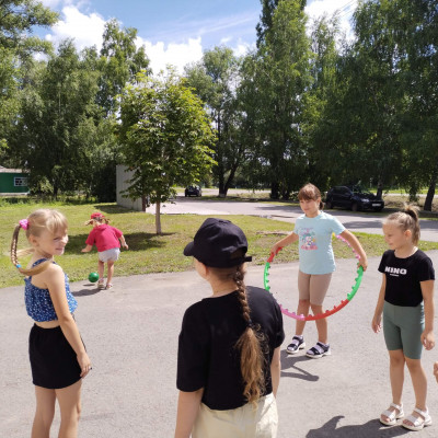 С обручем, скакалкой,
