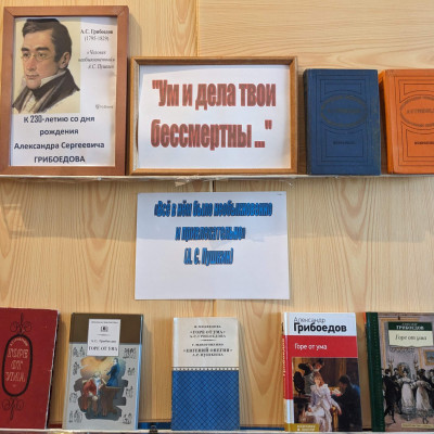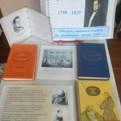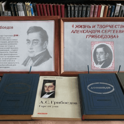 На выставке представлены произведения А. С. Грибоедова, а также литература, посвященная его жизни и творчеству. Читатели подробно узнают об удивительной, красивой любви к Нине Александровне Чавчавадзе и о трагическом финале его жизни. Будучи дипломатом, Грибоедов погиб в далёкой Персии, выполняя свой долг перед Родиной.