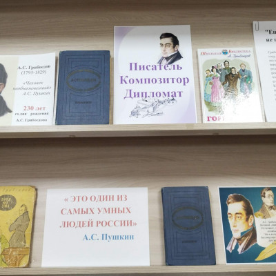 К 230-летию со дня рождения русского драматурга, поэта и писателя Александра Сергеевича Грибоедова в Бычковской библиотеке оформлена книжная выставка,на которой представлены издания о жизни и творчестве, воспоминания современников, а также произведения, представляющие важность и значимость Грибоедова, как драматурга и писателя эпохи, а именно это книги «Горе от ума», «Студент», «Притворная неверность», «Молодые супруги» и др.