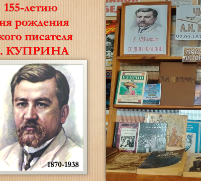 Выставка «ЧИТАЕМ А.И. КУПРИНА» посвящена 155-летию со дня рождения русского писателя-реалиста, переводчика А.И. Куприна (07.09.1870-25.08.1938)