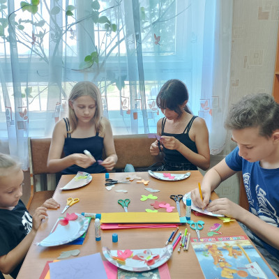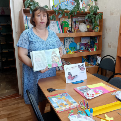 10 июля в Петропавловской детской библиотеке прошло творческое занятие по изготовлению поделки из цветной бумаги "Красавица-бабочка". Вначале мероприятия библиотекарь рассказала о чешуекрылых насекомых, их жизненном цикле, строении и питании, зачитала интересные факты о бабочках.