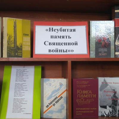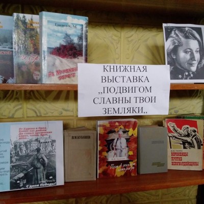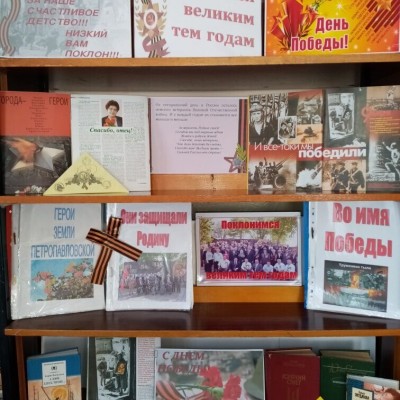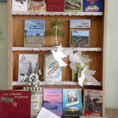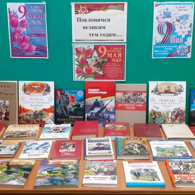 На данной выставке разместились книги о городах-героях, книги, рассказывающие о событиях тех лет, о тайнах Великой Отечественной войны, книги Памяти, художественная литература. Всем нашим защитникам, сегодняшним ветеранам и тем, кого с нами нет, мы обязаны тем, что живем сегодня под мирным, чистым небом. Вечная им слава!