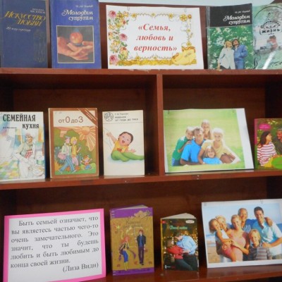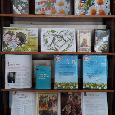 Межпоселенческая библиотека представляет книжную выставку " Гимн вечной любви ". 8 июля в России отмечается ни на что не похожий, очень душевный и глубокий по смыслу праздник - День семьи, любви и верности. В этот день принято говорить о близких и любимых людях, дарить друг другу добрые слова, улыбаться, радоваться лету и солнцу! На выставке представлены книги и журналы , рассказывающие об истоках этого праздника .