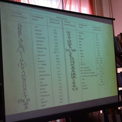 В библиотеке прошло мероприятие совместно с социально-культурным центром «Ладомира», ко Дню славянской письменности и культуры «Славянские просветители-Кирилл и Мефодий» с участием учеников 4-ых классов Петропавловской средней школы. Открыла мероприятие заведующая библиотекой Татьяна Павловна Дрога. Она объяснила ребятам почему именно 24 мая мы празднуем День славянской письменности и культуры, и кто создал нашу азбуку. Директор центра «Ладомира» Любовь Ивановна Духненко познакомила ребят с историей этого праздника, рассказала почему он связан с именами святых равноапостольных братьев Кирилла и Мефодия, познакомила с биографией создателей первой азбуки и проповедников христианства. Дети познакомились с кириллицей и прочитали на старославянском языке слова и предложения. В конце мероприятия Татьяна Павловна Дрога провела экскурсию по залам библиотеки. Мероприятие сопровождалось показом слайд-презентации «День славянской письменности и культуры», подготовленной библиотекарем Светланой Владимировной Островерховой.