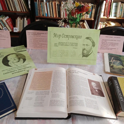 На выставке представлены произведения А.Н. Островского: комедии, пьесы, сказки и проза. В них вместилась вся жизнь России 19 века, ее нравы, ее история. Наиболее известные пьесы Островского — «Свои люди — сочтёмся», «Не в свои сани не садись», «Не всё коту масленица», «В чужом пиру похмелье», «Бедность не порок», «Светит, да не греет», «На каждого мудреца довольно простоты», «Без вины виноватые», «Таланты и поклонники», «Снегурочка», «Гроза», «Лес».