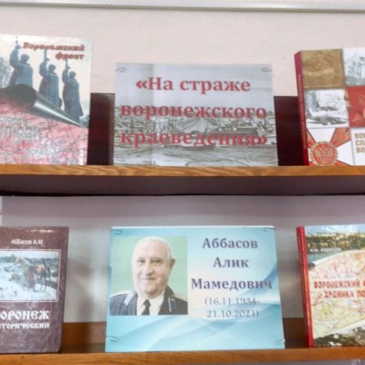 Библиотека №1 представляет вашему вниманию книжную выставку «На страже воронежского краеведения», которая посвящена Аббасову Алику Мамедовичу, краеведу, доценту исторических наук. Аббасов Алик Мамедович родился 16 ноября 1934 года ( умер в 21.10.2021), в г. Карши Узбекской ССР. Он являлся председателем Воронежской областной общественной организации «Союза военных писателей» А.М. Аббасов - автор нескольких исторических повестей - "На краю Дикого поля" (1985г.), "Путь к престолу" (1991 г.), "Самозванцы" (1992 г.), "Донской голова Василий Биркин" (2002 г.), "Кальмиусский шлях" (2005 г.), редактор - составитель монографии "В.И. Ленин и воронежцы" (1990 г.). За более чем полувековую творческую деятельность А.М. Аббасовым написано и издано около 300 различных книг, монографий, исследовательских работ, энциклопедий, справочников, тематически связанных с историей Полтавского и Воронежского регионов. В газетах, журналах и периодических изданиях опубликовал около 1 тысячи статей, очерков, заметок.