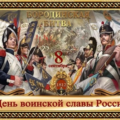 8 сентября отмечается День воинской славы России — День Бородинского сражения русской армии под командованием М.И. Кутузова с французской армией (1812 год).