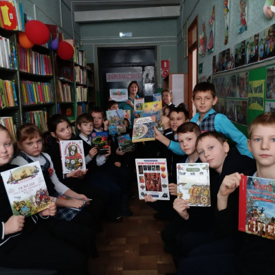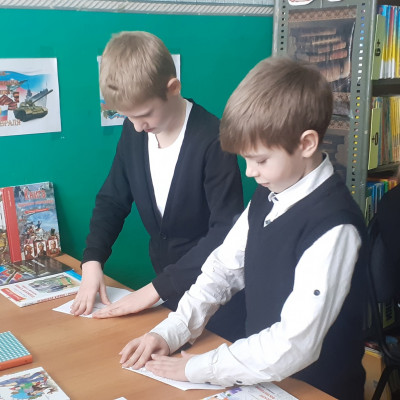 В завершении мероприятия ребята познакомились с книжной выставкой "Защитникам слава" и сфотографировались с книгами.
