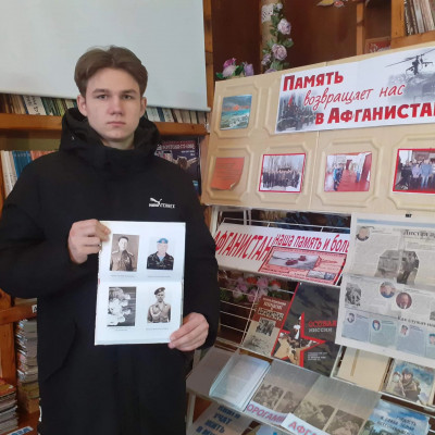 ПАМЯТЬ ВОЗВРАЩАЕТ НАС В АФГАНИСТАН» - так называется книжная выставка в Петропавловской библиотеке №2, посвященная 35-ой годовщине со дня вывода советских войск из Афганистана (1979-1989). На выставке представлен материал об исторических событиях афганской войны, о советских воинах, геройски выполнивших свой интернациональный долг. В книгах местных авторов: М.М. Кривошлыкова «Гордость и слава земли Петропавловской», В.И. Бураковой «Вспомним всех поименно», в подборке статей из районной газеты «Родное Придонье» читатели могут узнать о заслугах земляков перед Отечеством и их боевых наградах. Особое место занимают сборники воспоминаний воронежцев, участников Афганской войны: «Афган: война без линии фронта», В. Андреев «Нежданная война», М. Гвоздев «Молитва под ливнем свинца. Афган». Эти издания для выставки предоставил наш земляк – капитан, кавалер ордена Красной Звезды, воин-интернационалист Рыбалкин Александр Сергеевич. Честь и слава солдатам России, честно и до конца исполнивших свой интернациональный долг!
