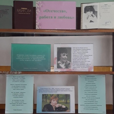 Подготовил книжную выставку «Отечество, работа и любовь» к 90 -летию со дня рождения Риммы Фёдоровны Казаковой. Римма Казакова – необыкновенно лиричный поэт – принадлежит к поколению шестидесятников, автор лирических песен о любви. Огромную популярность получил поэтический цикл, написанный для Александра Серова, а песня «Мадонна» и вовсе стала народным хитом. Для любителей поэзии на выставке представлены избранные произведения и сборник стихотворений выдающейся поэтессы.