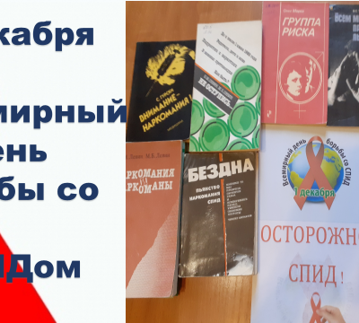 1 декабря — Всемирный день борьбы со СПИДом. В преддверии этого дня в Петропавловской библиотеке № 2 оформлена выставка-предупреждение «Осторожно – СПИД!», которая расскажет читателям о том, каким образом происходит заражение этим вирусом, как проявляется заболевание, о мерах профилактики. Выставка предупреждает , что несмотря на то, что ВИЧ перестал считаться смертельно опасным заболеванием, а перешел в категорию хронических недугов, относиться попустительски к этой проблеме нельзя. Об этом свидетельствует также памятка на выставке «Будущее без ВИЧ-инфекции!».