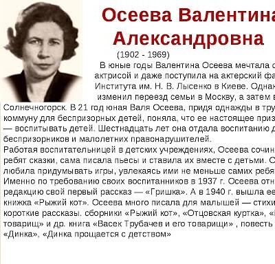 В 2022 году исполняется 120 лет со дня рождения Валентины Александровны Осеевой