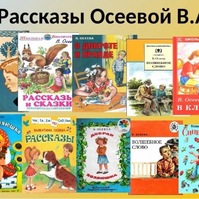 Первым, принёсшим Валентине Осеевой известность, стал рассказ «Бабка», который был опубликован в журнале «Дружные ребята» в 1939 году. В конце того же года рассказ появился в литературном сборнике «Снежки». Эта трогательная история посвящена душевной чёрствости мальчика Борьки по отношению к собственной бабушке. В 1940 году вышел в свет первый сборник рассказов Валентины Осеевой под названием «Рыжий кот». Во время Великой Отечественной войны и вскоре после неё были изданы сборники «Волшебное слово» (1944), «Отцовская куртка» (1946), «Мой товарищ» (1950). К числу наиболее известных рассказов В. А. Осеевой относятся: короткий рассказ «Волшебное слово», давший начало целому сборнику писательницы, и рассказ-притча «Синие листья», опубликованный в 1943 году в журнале «Мурзилка». Его название В. А. Осеева дала одному из лучших своих сборников (1965).