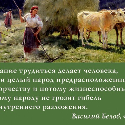 В краткой биографии Белова Василия Ивановича стоит отметить, что он на протяжении всей жизни собирал устные рассказы, пословицы, песни, бывальщины, разнообразные этнографические материалы. В дальнейшем они послужили ценным материалом для современной этнографии Русского Севера.