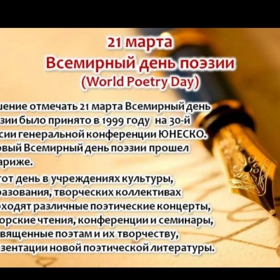 21 марта -Всемирный день поэзии. В этот день мы вспоминаем и знакомимся с поэтическими сборниками великих поэтов прошлого и современности.