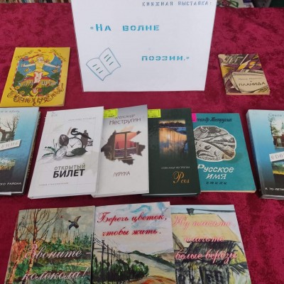 Поэзия-это точность взгляда, тонкость чувств, лиризм. Поэзия местных поэтов- это близкие сердцу образы,знакомые и любимые уголки природы. Наша библиотека приглашает вас на выставку " На волне поэзии". Здесь выставлены книги со стихами местных поэтов. Приходите, возьмите книгу для души.