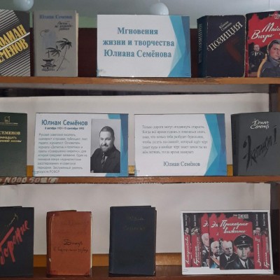 Межпоселенческая библиотека представляет книжную выставку «Мгновения жизни и творчества Юлиана Семёнова». Выставка расскажет о писателе как участнике и летописце драматических событий XX века, о героях его произведений и их реальных прототипах –политиках, дипломатах, разведчиках, сыщиках, журналистах, а также о малоизвестных эпизодах отечественной и мировой истории.